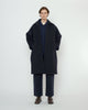 A classic mid-length wool overcoat. This is the wool version of our Signature Duster Coat. Features a pointed collar, straight hem, concealed placket, raglan sleeves, and two front side pockets. Cut with a boxy fit.