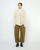 A chunky 100% recycled wool weaved in a thick knit construction. Substantial and warm yet still maintains a light weightedness. Breathable, comfortable, insulating, and moisture wicking.